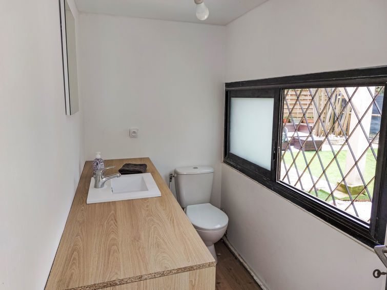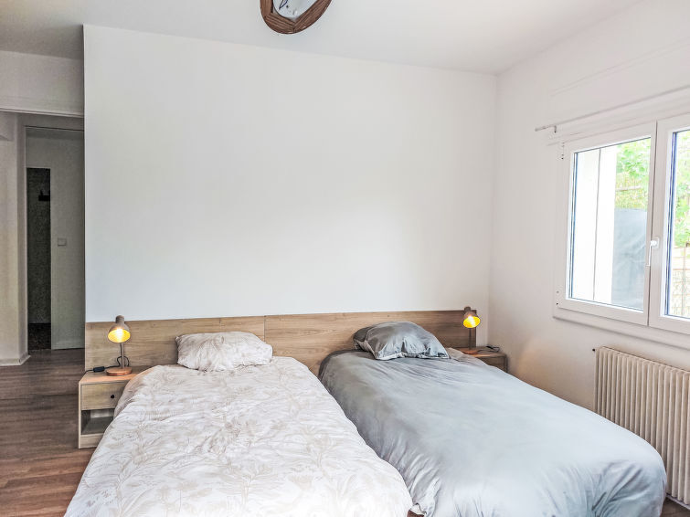 "Villeneuve Plage", huis 4-kamers 90 m2. Comfortabel ingericht: woon-/eetkamer met TV. Uitgang naar het terras. 1 kamer met 1 2-pers bed (140 cm, lengte 200 cm). 1 kamer met 2 bedden (90 cm, lengte 190 cm). Studio met 1 2-pers bed (140 cm, lengte 190 cm), douche/WC. Uitgang naar het terras. Keuken in de hal (oven, afwasmachine, 4 kookpitten (vlammen), broodrooster, waterkoker, magnetron, diepvriezer, elektrische koffiemachine). Uitgang naar de tuin. Douche/WC, aparte WC. Gas-verwarming. Terras 25 m2 gedeeltelijk overdekt, op het zuiden gelegen. Terrasmeubelen. Uitzicht op de tuin. Ter beschikking: wasmachine. Internet (WiFi, gratis). Parkeerplaats (2 Auto's). Rookvrij huis. 1 huisdier/hond toegestaan. Rookmelders. Geen interne verbinding tussen de aparte wooneenheden. Aanbod door een commerciële eigenaar volgens art. 155, IV, CGI 06161001634HM