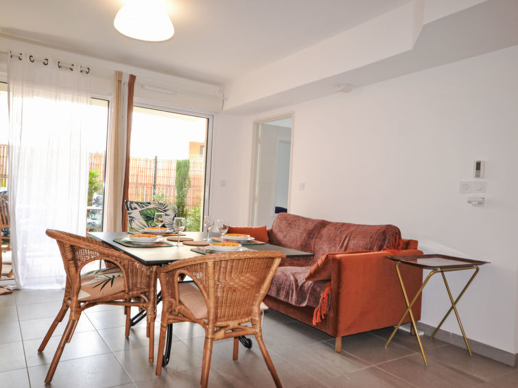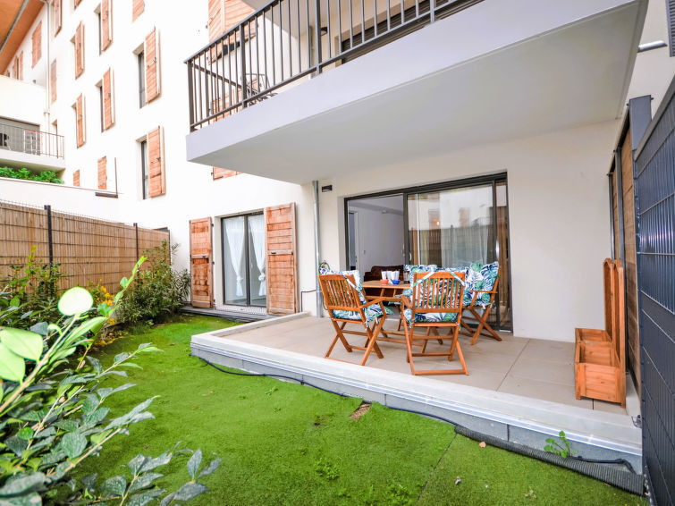 Appartement 2-kamers 43 m2, op de begane grond. Comfortabel en modern ingericht: woon-/eetkamer met panoramavenster met TV (Flatscreen TV). Uitgang naar het terras. 1 kamer met panoramavenster met 2 bedden (80 cm, lengte 200 cm). Uitgang naar het terras. Open keuken (oven, afwasmachine, 2 inductiekookplaten, broodrooster, waterkoker, magnetron, elektrische koffiemachine, pads voor de koffiemachine (Nespresso) extra) met eettafel. Douche/WC. Elektrische verwarming, heteluchtverwarming. Terras 9 m2, kleine tuin 26 m2, op het zuiden gelegen. Terrasmeubelen, zitgelegenheid. Uitzicht op de tuin. Ter beschikking: wasmachine, strijkijzer, haardroger. Internet (WiFi, gratis). Garage, breedte 260 cm. Niet rokers woning. Rookmelders, brandblusser. Aanbod door een particulier volgens art. 155, IV van CGI. 1300100590318