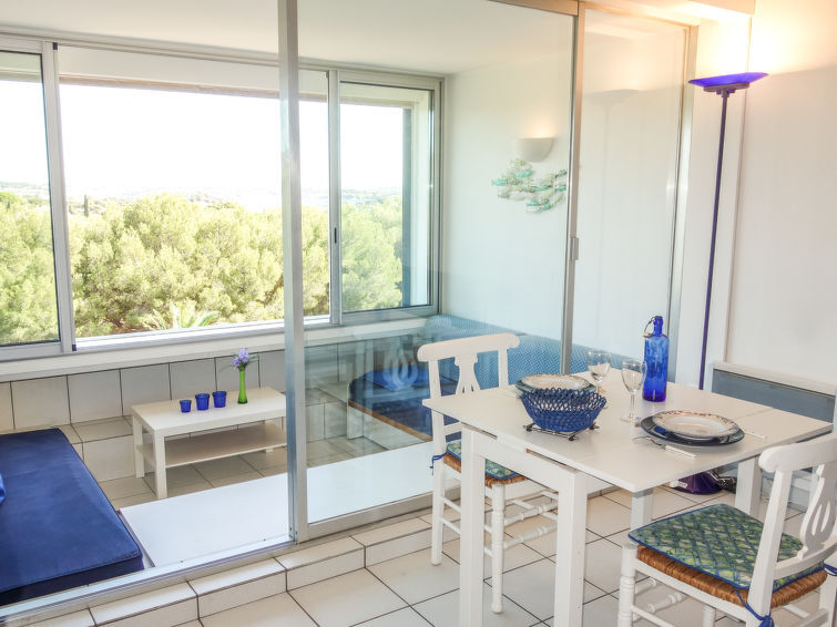 Appartement 1-kamer 28 m2 op de 3e verdieping, op het oosten gelegen. Mooi ingericht: woon-/eetkamer met panoramavenster met 1 2-pers divanbed (160 cm, lengte 200 cm), TV (Flatscreen TV), stereo-installatie. Uitgang naar het terras. Keuken in de hal (afwasmachine, 2 keramische glas kookplaten, broodrooster, waterkoker, magnetron, diepvriezer, elektrische koffiemachine, pads voor de koffiemachine (Nespresso) extra). Douche/WC. Elektrische verwarming, air-conditioning. Terras 8 m2, overdekt, op het oosten gelegen. Mooi uitzicht in de verte op zee en het landschap. Ter beschikking: wasmachine, droger, strijkijzer. Internet (Internet (WiFi), gratis). TV alleen FR. Rookmelders. Loggia van 8 m², gesloten door een glazen raam. U kunt gratis parkeren op slechts 100 meter van het appartement in de residentie. 83009001288AS