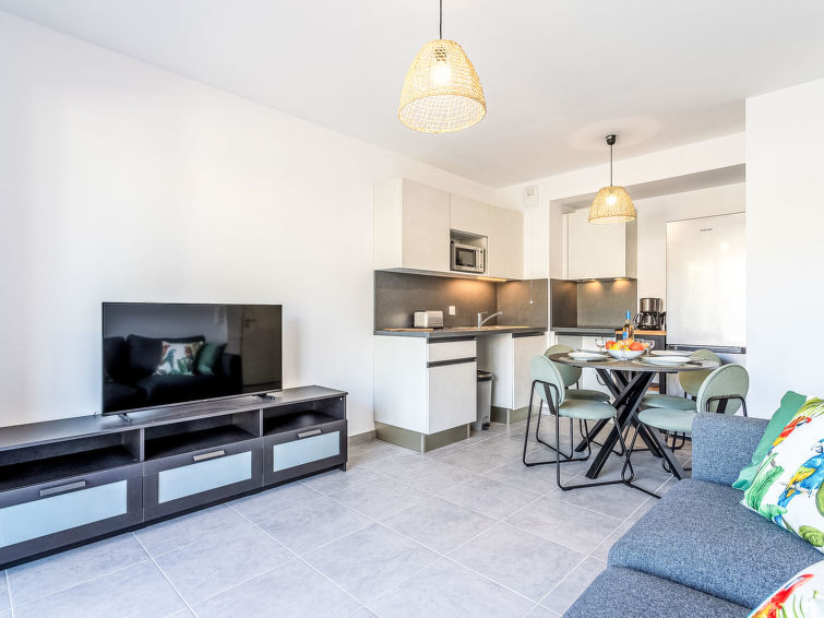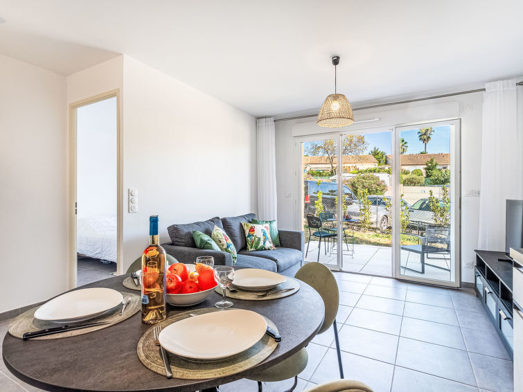 "Eden Golfe 1", appartement 2-kamers 43 m2 op de 1e verdieping. Mooi ingericht: woon-/eetkamer met 1 2-pers divanbed (140 cm, lengte 190 cm), TV (Flatscreen TV). Uitgang naar het terras. 1 kamer met 1 2-pers bed (160 cm, lengte 200 cm). Uitgang naar de zitplaats in de tuin. Kookhoek (4 keramische glas kookplaten, broodrooster, waterkoker, magnetron, diepvriezer, elektrische koffiemachine). Douche/WC. Elektrische verwarming. Terras 9 m2 gedeeltelijk overdekt, zithoek in de tuin 25 m2, op het noordoosten gelegen. Ter beschikking: wasmachine. Internet (WiFi, gratis). Parkeerplaats nr. 21 (overdekt). Niet rokers woning. 1 klein huisdier/hond toegestaan. Rookmelders. Aanbod door een particulier volgens art. 155, IV van CGI.