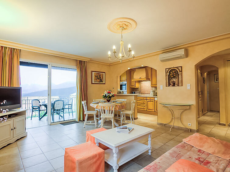 Villa 3-kamers 80 m2. Comfortabel en mooi ingericht: woon-/eetkamer met TV (Flatscreen TV). Uitgang naar het terras. 1 kamer met 1 2-pers bed (1 x 140 cm, lengte 190 cm), TV (Flatscreen TV). Uitgang naar het terras. 1 kamer met 2 bedden (90 cm, lengte 190 cm). Open keuken (mini-oven, oven, afwasmachine, 4 keramische glas kookplaten, broodrooster, waterkoker, magnetron, elektrische koffiemachine, pads voor de koffiemachine (Senseo) extra). Douche, aparte WC. Air-conditioning, heteluchtverwarming. Terras 25 m2, overdekt. Terrasmeubelen, barbecue (verrijdbaar), ligstoelen, bergruimte. Mooi uitzicht op zee. Ter beschikking: wasmachine, strijkijzer, haardroger. Internet (Internet (WiFi), extra). Parkeerplaats bij het huis. Rookmelders. 83048000177H4