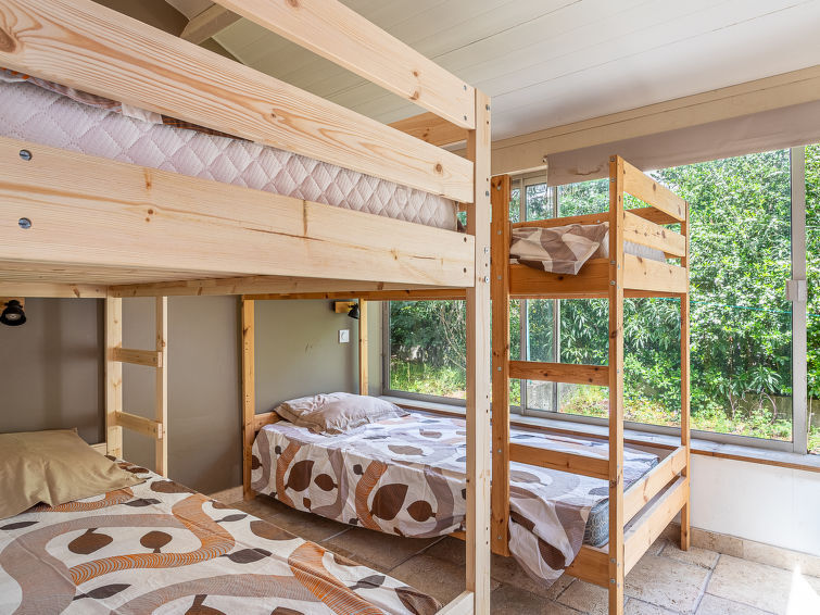Villa 6-kamers 100 m2. Ruim en licht, mooi ingericht: woon-/eetkamer met eettafel en TV (Flatscreen TV). Uitgang naar het terras, naar het zwembad. Salon met panoramavenster met bibliotheek. Uitgang naar het terras. 1 kamer met 1 2-pers bed (2 x 90 cm, lengte 200 cm). 1 kamer met 1 2-pers bed (160 cm, lengte 200 cm). Uitgang naar het balkon. 1 kamer met 1 2-pers bed (140 cm, lengte 190 cm). Uitgang naar het terras. 1 kamer met 2 x 2 stapelbedden (90 cm, lengte 190 cm). Uitgang naar het terras. Kookhoek (oven, afwasmachine, 4 keramische glas kookplaten, broodrooster, waterkoker, magnetron, elektrische koffiemachine). Bad/WC, douche, aparte WC, dubbele wastafels. Elektrische verwarming, air-conditioning. Natuurstenen vloeren. Groot terras, op het zuiden gelegen, groot terras, op het noorden gelegen. Terrasmeubelen, ligstoelen. Uitzicht op het zwembad. Ter beschikking: wasmachine, droger, haardroger. Internet (WiFi, gratis). Geschikt voor families. Niet rokers woning. 1 klein huisdier/hond toegestaan. TV alleen FR. Rookmelders. Aanbod door een particulier volgens art. 155, IV van CGI. 83071000757AO