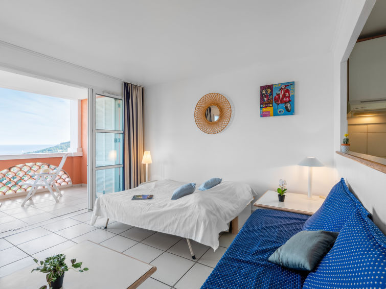 "Les Bastides (I4143)", appartement 3-kamers 42 m2, op de bovenverdieping. Woonkamer met 2 divanbedden (80 cm, lengte 190 cm), TV (Flatscreen TV). Uitgang naar het terras. 1 kamer met 1 2-pers bed (140 cm, lengte 190 cm). Uitgang naar het terras. Cabine met 1 x 2 stapelbedden (80 cm, lengte 190 cm). Open keuken (3-pits kookplaat, oven, afwasmachine, broodrooster, waterkoker, magnetron, diepvriezer, elektrische koffiemachine, pads voor de koffiemachine (NESPRESSO) extra). Douche, aparte WC. Groot terras 24 m2. Terrasmeubelen. Mooi panoramazicht op zee. Ter beschikking: wasmachine, strijkijzer. Internet (Internet (WiFi), extra). Parkeerplaats nr. 065 (1 Auto) bij het huis. Niet rokers woning. 1 klein huisdier/hond toegestaan. Rookmelders. Aanbod door een commerciële eigenaar volgens art. 155, IV, CGI