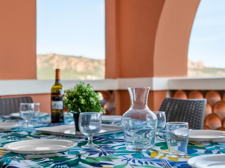 Groot vakantiecomplex "Village Cap Estérel - Les Bastides". Aan de rand van de plaats, 2 km van het centrum van Agay, tegen een helling, in een woonwijk, 900 m van zee, 1.8 km van het strand, de straat oversteken, aan de golfbaan, in een voetgangerszone. Voor medegebruik: park 210 ha, 5 zwembaden (seizoensgebonden beschikbaarheid: 06.Apr. - 03.Nov.). Kinderzwembad, jeu de boules, kinderspeelplaats (glijbaan, schommel). In het complex: spa centrum (extra), winkel, wasserette (extra). Winkel 500 m, levensmiddelenwinkel, supermarkt 6 km, restaurant 500 m, bakkerij 500 m, bushalte "Ligne 21" 300 m, treinstation "Saint-Raphaël-Valescure TGV" 9 km, zandstrand "Tiki Plage" 900 m. Jachthaven 1 km, golfterrein (9 holes), tennis 500 m. Attracties in de buurt: Anthéor 8 km, Saint-Raphaël 9 km, Fréjus 13 km, Cannes 33 km, Saint-Tropez 50 km, Nice 76 km. Bekende meren kunnen gemakkelijk worden bereikt: Lac Saint-Cassien. Wandelgebied Massif de l'Estérel. Autovrij vakantiepark, geen lift. Animatie in het hoogseizoen. Geschikt voor families, kinderopvang mogelijk in het hoogseizoen (extra). Bewaakt vakantiecomplex. Vergelijkbare accommodaties kunnen worden geboekt.